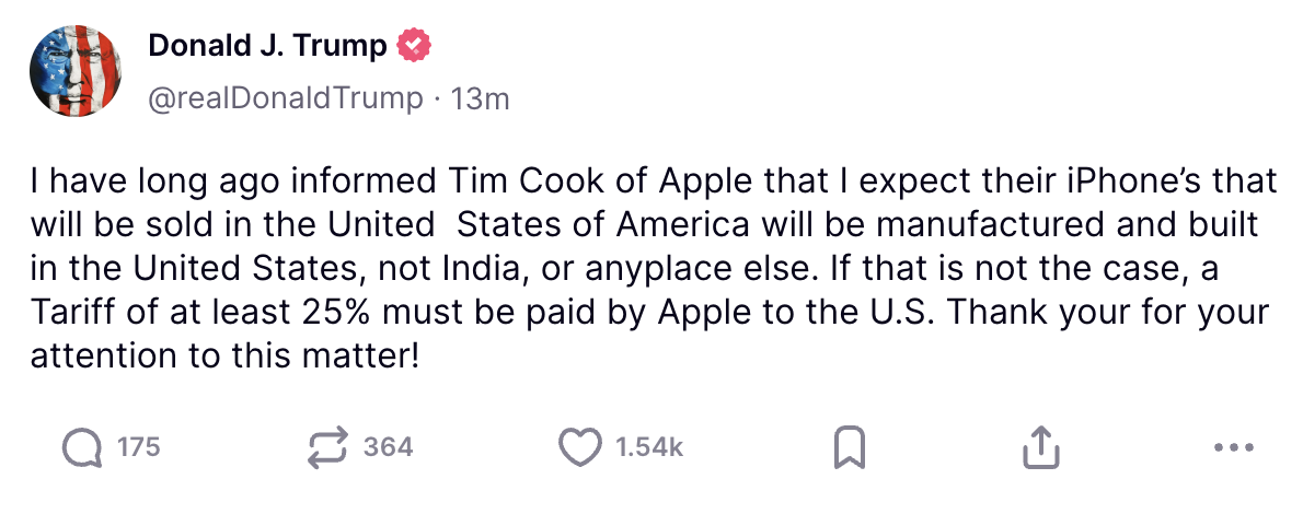 特朗普威胁对苹果征收关税股配咖吧特朗普威胁对苹果征收关税