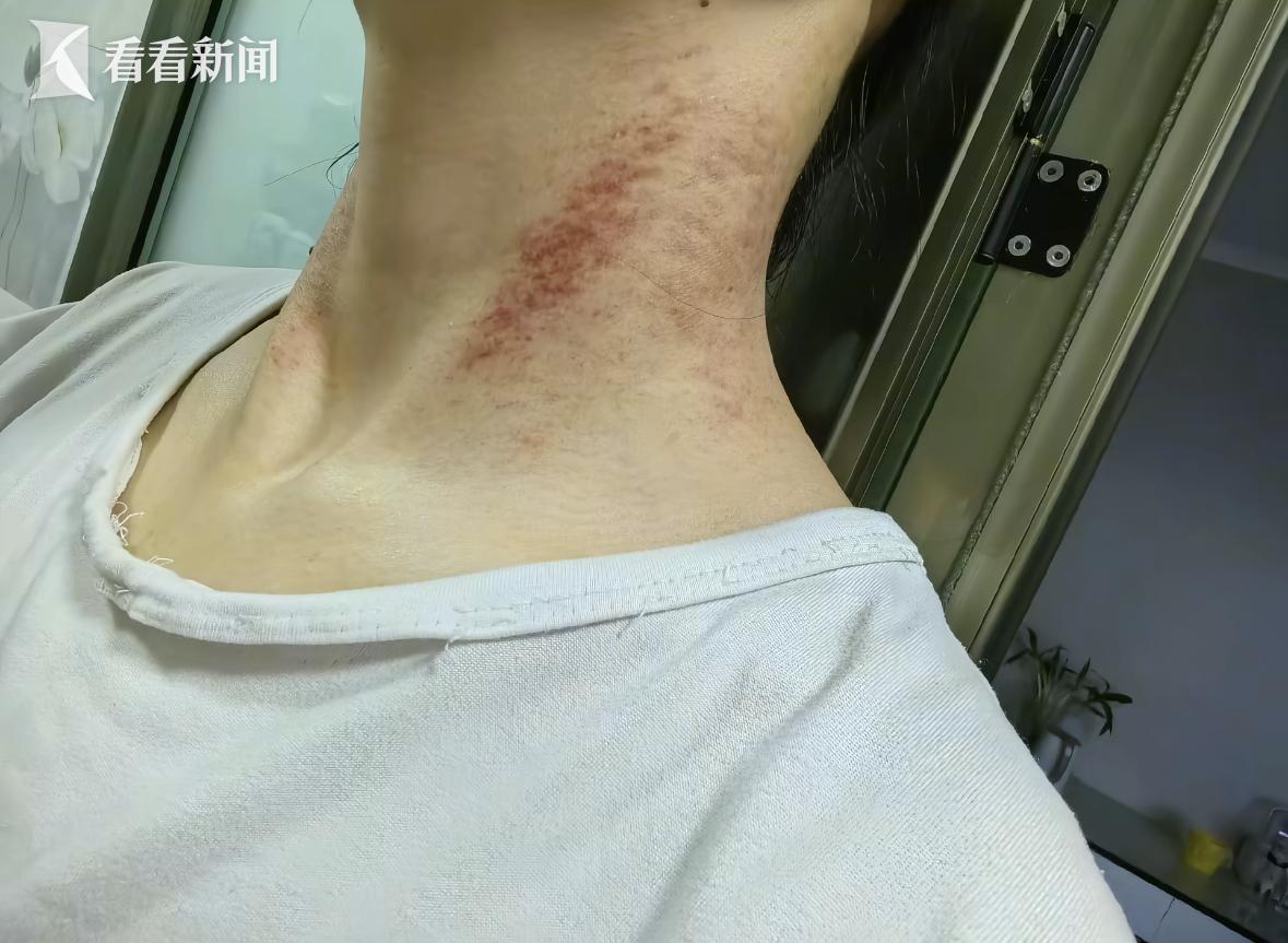 两位死者家属说,在生命被夺走之前,董某某早已陷入漫长的家暴,屋里柜子上的刀痕、砸坏的电视机、脖子上清晰的掐痕无不验证着这一点。她曾试图寻求救援,但父亲也被师某某跳起来打得青一块紫一块。