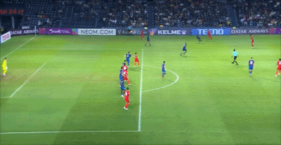 第45分钟,亚历斯祖左脚抽射,球偏出底线